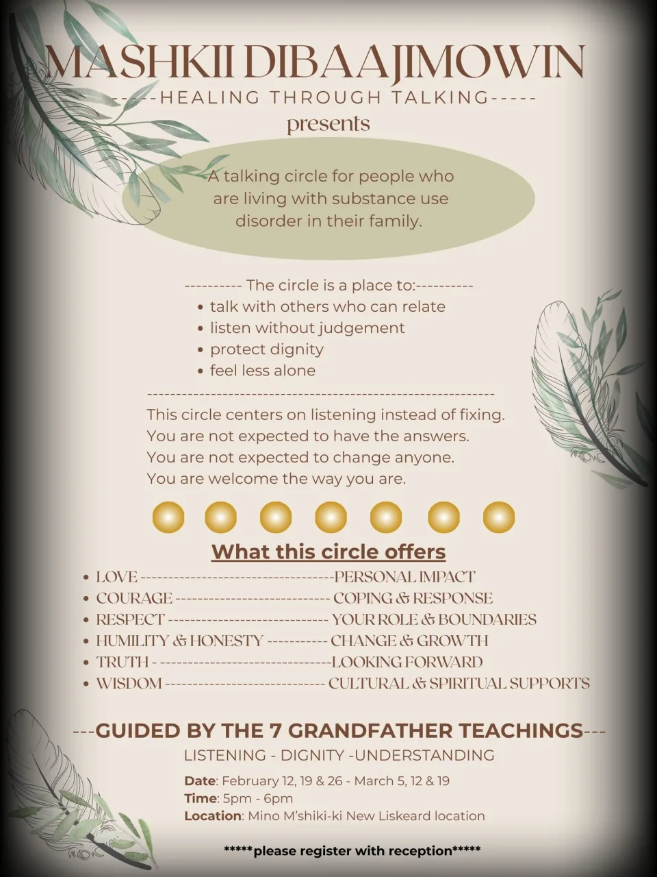 Join us for a Talking Circle for people who are living with substance abuse disorder in their Family.